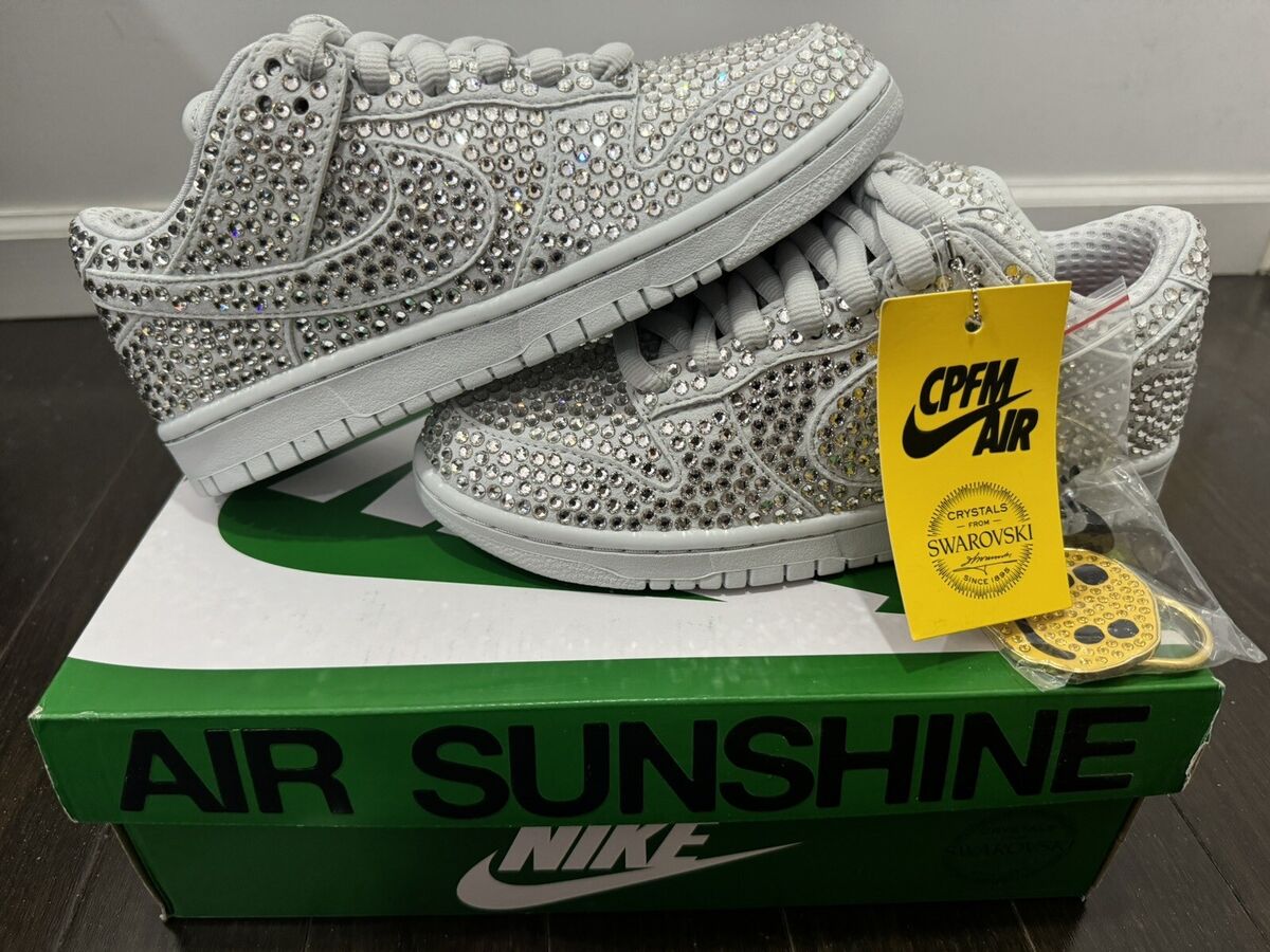 Nike y CPFM cuentan con un largo historial de colaboraciones, el resultado son estas zapatillas, con un swoosh maximalista, relleno extra en la lengüeta y doble lazada desmontable. Si cubrimos todo esto de un buen baño de cristales Swarovski, no precisamente pequeños, obtenemos un par de bolas de discotecas listas para montar una fiesta allá donde vayas